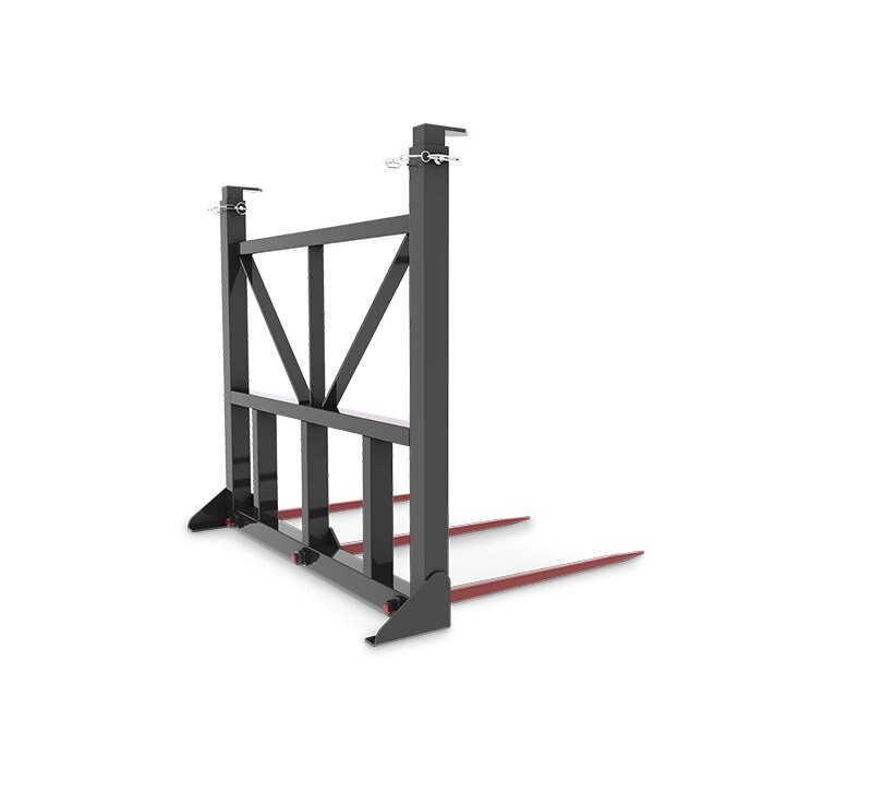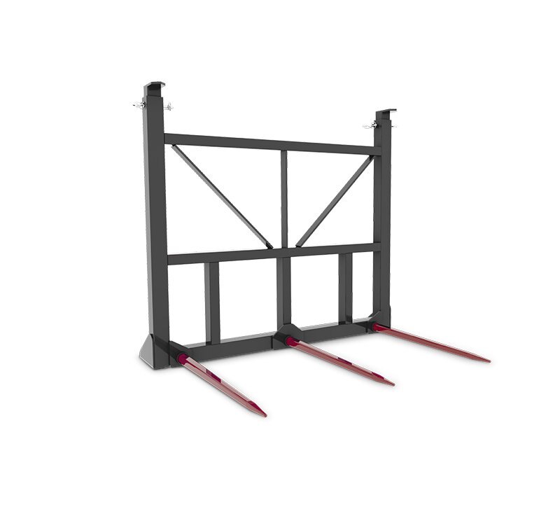 • 50" high frame with adjustable guard posts for safe handling of large square bales up to 3 high