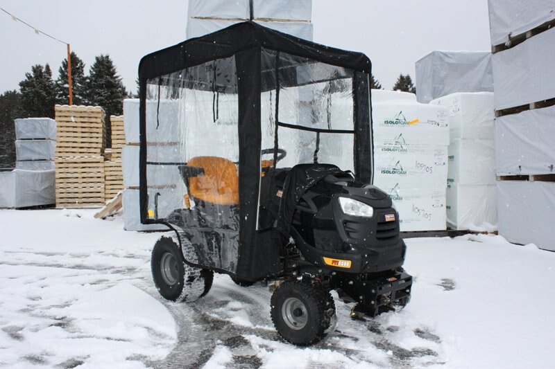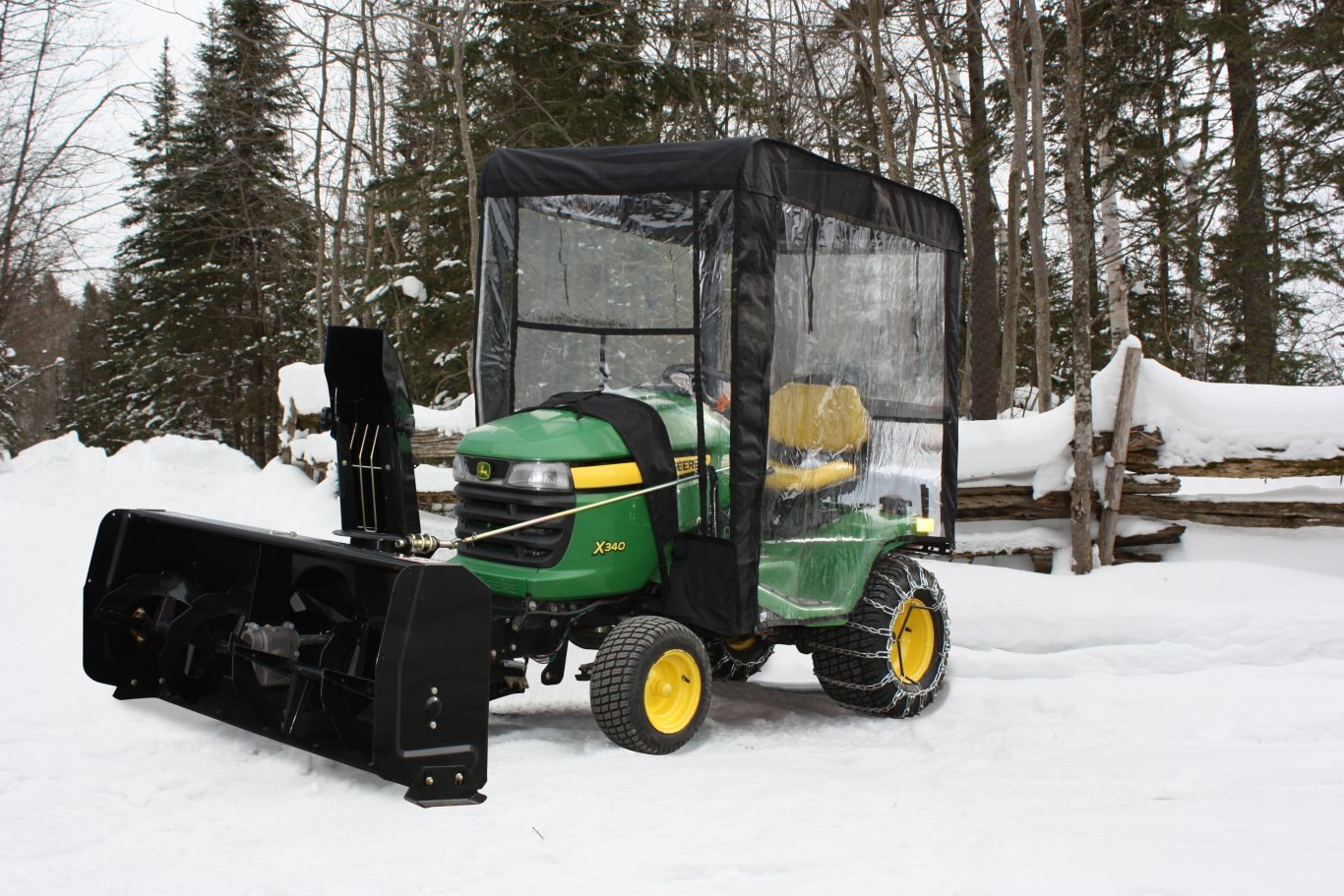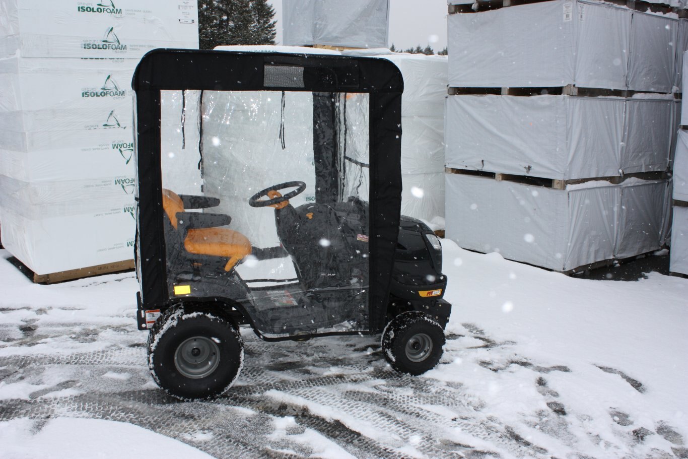 34″ Soft Cab for Lawn and Garden Tractors Universal mount for all major brands of tractors Stay covered and comfortable all winter! Includes Cab and mounting hardware