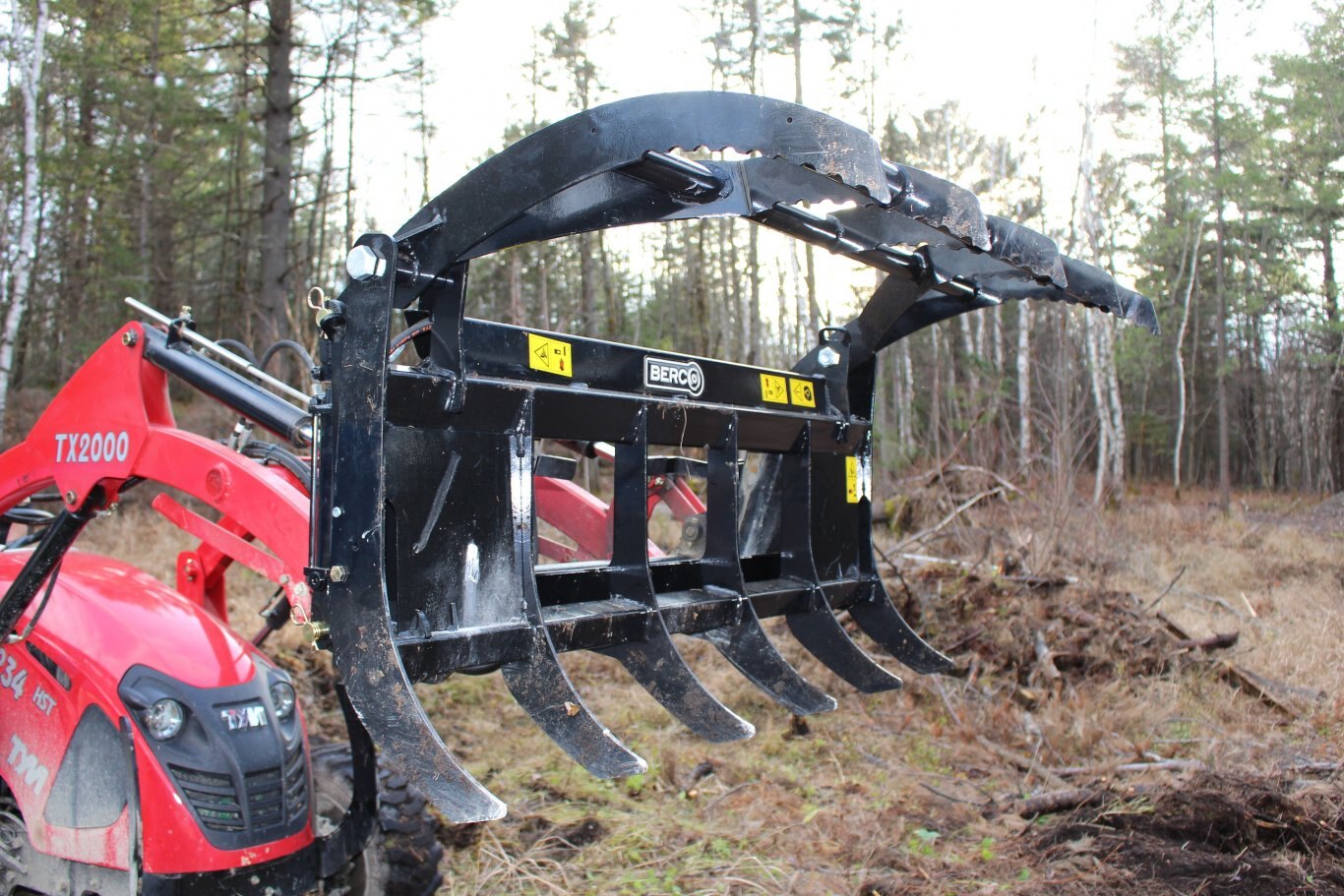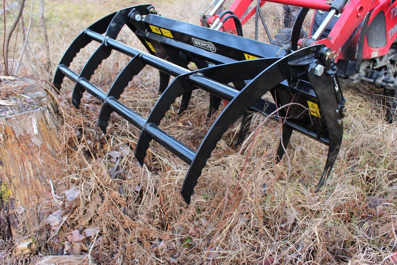 This claw grapple will fit onto all tractors equipped with a "skid steer" style attach with a maximum of 30 engine HP , with 3rd function hydraulic valve and a weight of maximum 3000 lbs along with a hydraulic system of up to 2400 psi.